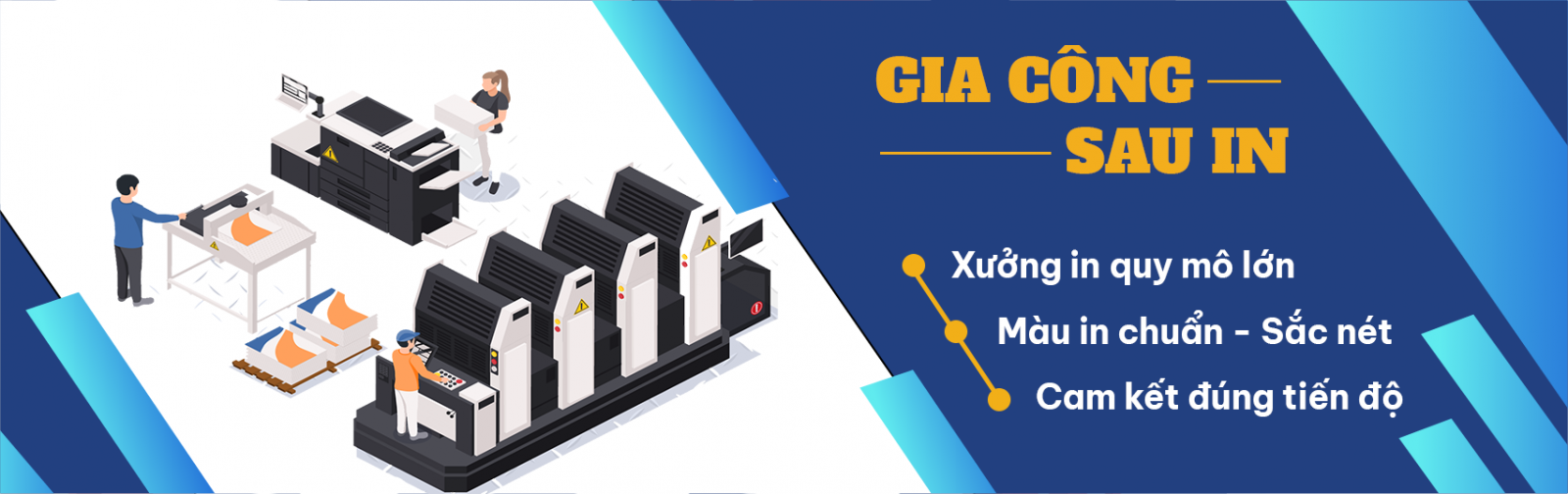 Để có được một sản phẩm in (in catalogue, in tờ rơi, lịch tết, hộp quà, …) thì thiết kế đẹp – in đẹp vẫn chưa đủ để làm nên một sản phẩm hoàn chỉnh đẹp mắt. Sản phẩm sau khi in chỉ là dạng bán thành phẩm (tờ in), đòi hỏi phải qua một số công đoạn khác để ra được sản phẩm hoàn thiện, đó gọi là công đoạn sau in – thành phẩm. Công ty chúng tôi chuyên nhận gia công sau in với đa dạng các kỹ thuật sau đây: